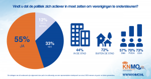 Een ruime meerderheid van de Nederlanders vindt dat muziekverenigingen en koren meer politieke steun verdienen. Dat blijkt uit een peiling uitgevoerd door Maurice de Hond. 59% van de Nederlanders vindt het van groot belang dat de muziekvereniging in hun gemeente blijft bestaan. 55% vindt dat de politiek de verenigingen actiever moet ondersteunen.