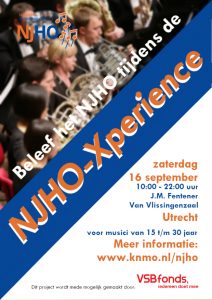 NJHO-XPERIENCE, iets voor jou? Het Nationaal Jeugd Harmonie Orkest (NJHO) komt terug en is op zoek naar muzikanten! Ben je benieuwd of het NJHO iets voor jou is of wil je ervaren hoe het is om te spelen in deze nieuwe club? Meld je dan aan voor de NJHO-Xperience op zaterdag 16 september! Voor de kosten (€ 25,–) hoef je het niet te laten. Tijdens deze dag ga je repeteren onder leiding van dirigent Jos Schroevers en leer je de musici en het repertoire van het NJHO kennen. Ben je aan het eind van de dag enthousiast geworden over dit orkest? Wie weet maak je dan al deel uit van het orkest tijdens het studieweekend op 13, 14 en 15 oktober en geef je op 29 oktober samen met andere talentvolle muzikanten het eerste concert van het nieuwe NJHO in een aansprekende concertzaal in Nederland! Het NJHO biedt plaats aan getalenteerde muzikanten in de leeftijd van 15 tot 30 jaar met een instrument uit de harmoniebezetting, harp, cello of piano. Voor meer info en aanmelden kijk op onze site: www.knmo.nl/njho.